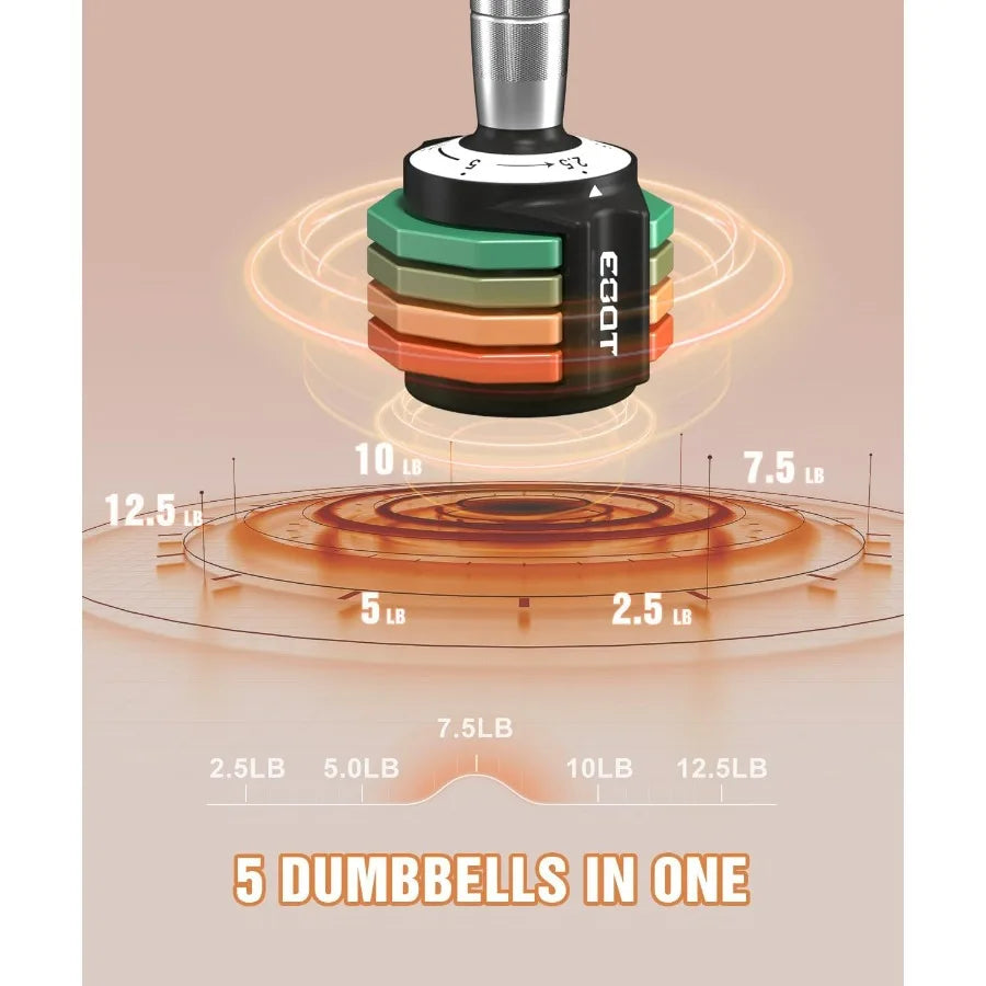 Adjustable Dumbbells Set/Single, 12.5LB 5 in 1 Free Adjustable Dumbbell Set with Anti-Slip Handle & Rainbow-colored Weight Plate