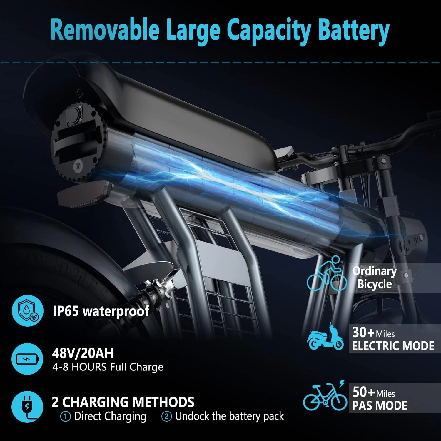 1200W adult electric bicycle, 48v20ah 20 inch tires, 32MPH outdoor commuting electric bicycle, with front and rear turn signals