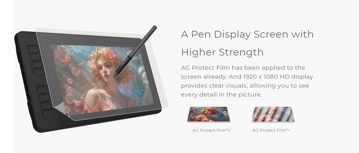 Create Right On Screen: Sketch, draw and paint directly on the full HD 11.6" IPS screen of GAOMON PD1161 drawing tablet. AG Protect Film has been applied to the screen already, makes it feel like sketching on paper while reducing uncomfortable glare and reflection at the same time.