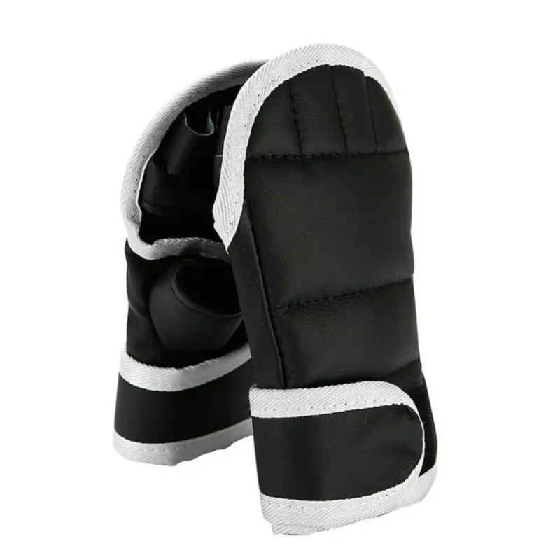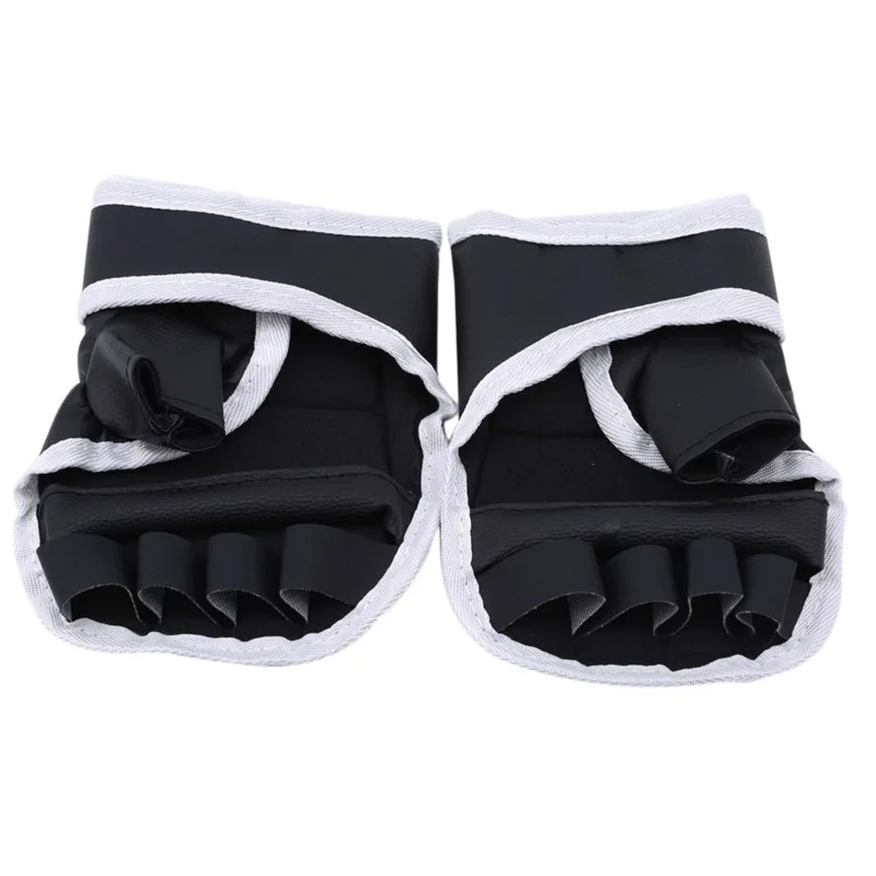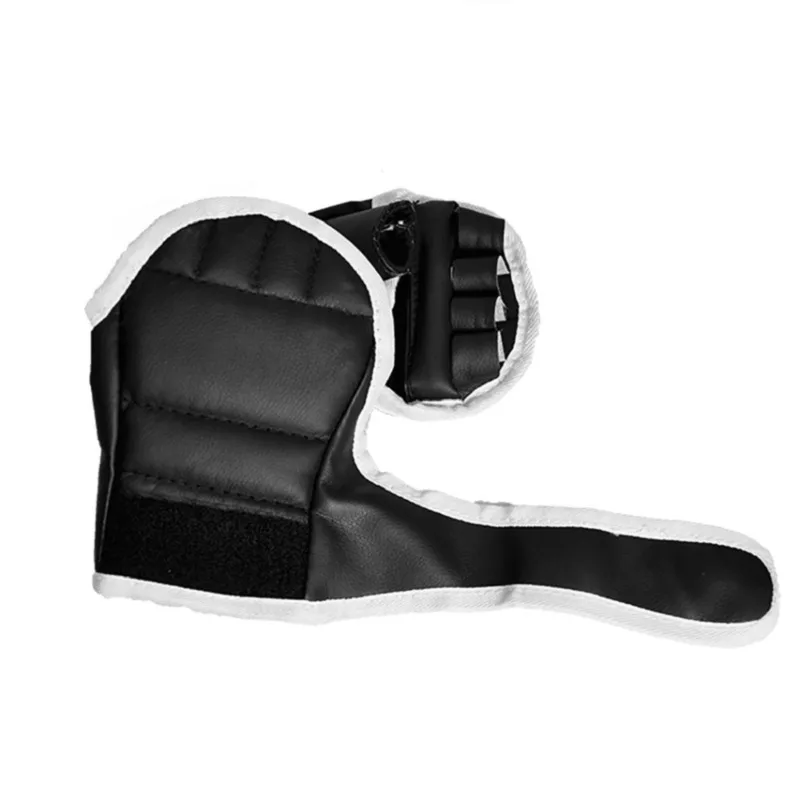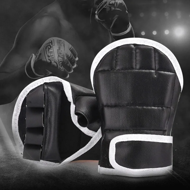 1Pair Black Half Finger Boxing Gloves PU Leather Fighting Kick Boxing Gloves Karate Muay Thai Training Workout Gloves Kids Men
