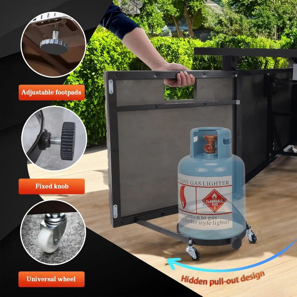 - CSA Certification: our fire pit tables are CSA certified to ensure compliance and safety. The hidden propane storage slot saves space and the adjustable footrest stay smooth even on rough roads