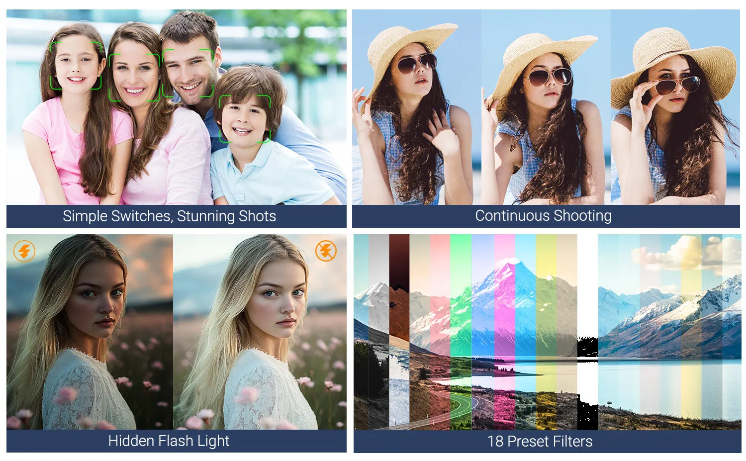 【Mutifuctional Camera for vlogging】 This rechargeable digital camera offer a wide range of features waiting to be unlocked, including time-lapse, slow motion, continuous shooting, anti-shake, smile & face detection, beauty face and selfie. With a full range of functions, it can satisfy your diverse needs for video shooting, and cameras for photography and video comes with two rechargeable batteries included, so no need to worry about charging.