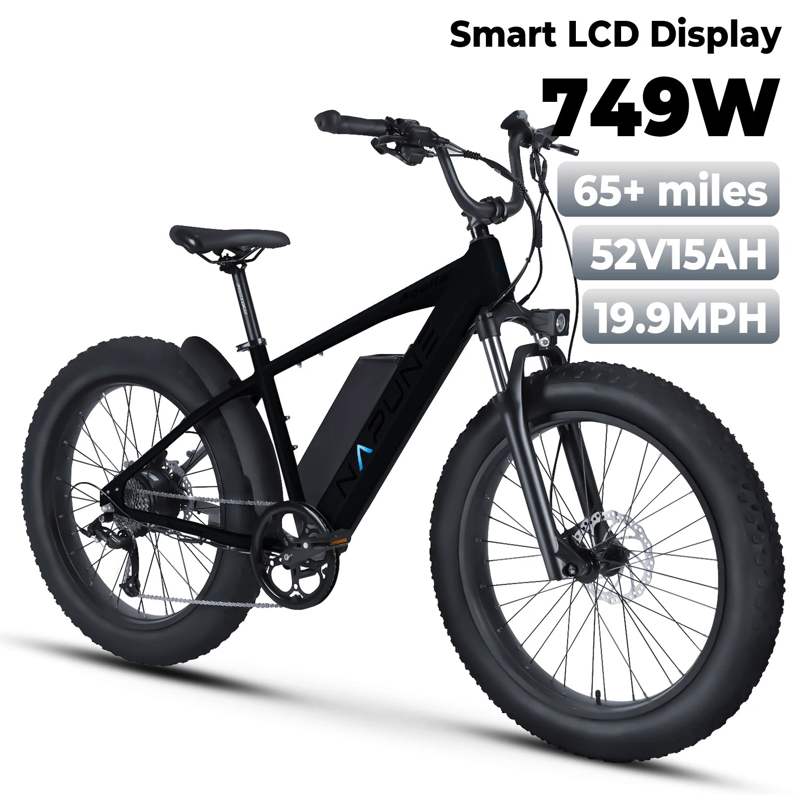 750W off-road electric bicycle 52V 17Ah 26 inch 4.0 fat tire with USB port and Bluetooth APP LCD screen 9-speed