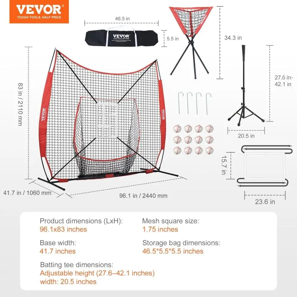 7x7ft Professional Training Set: Apart from the basic net and frame, this baseball softball practice net set also includes a square and nine-grid target frame, a batting tee, 12 baseballs, and a triangular collector. A professional and complete set of accessories helps players better practice pitching and catching, enhancing their skills swiftly. Plus, it comes with a dedicated storage bag for quick and convenient packing.