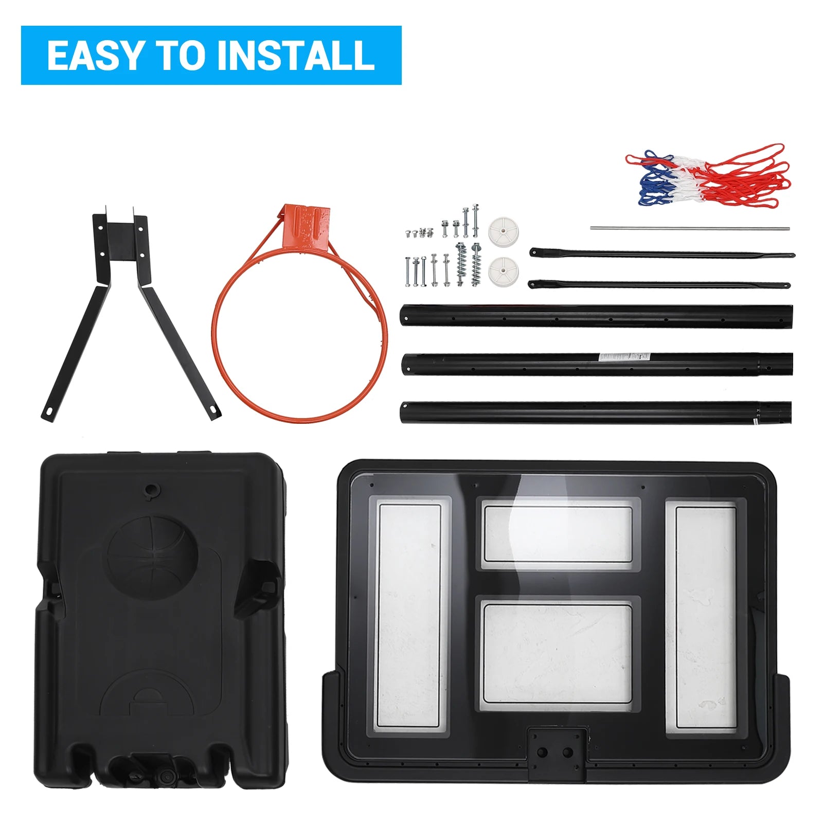 Easy Installation: Assembling the portable basketball hoop is very simple, equipped with clearly labeled parts and straightforward instructions. Additionally, we offer a 1-year warranty, so please contact us promptly if you encounter any issues.