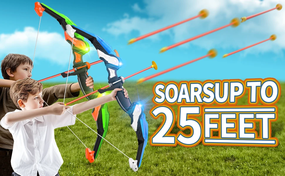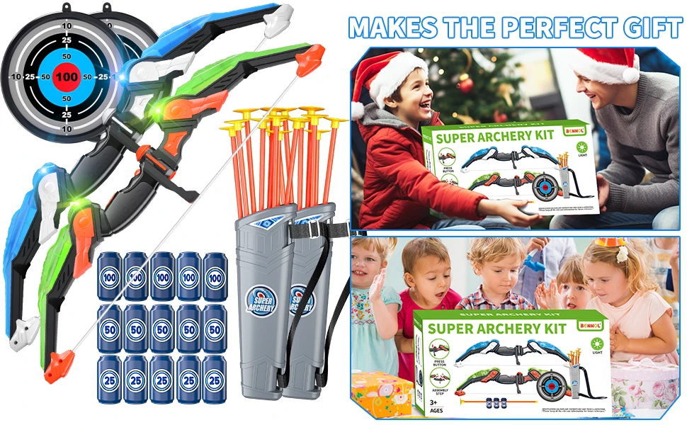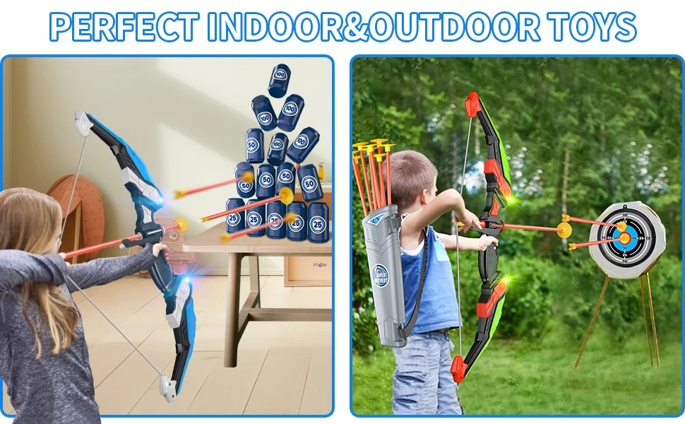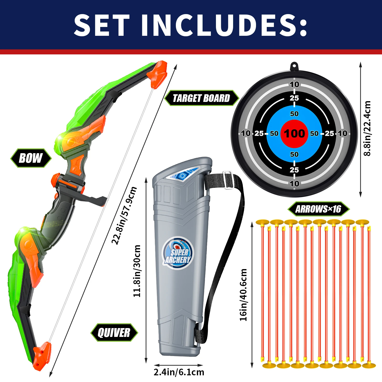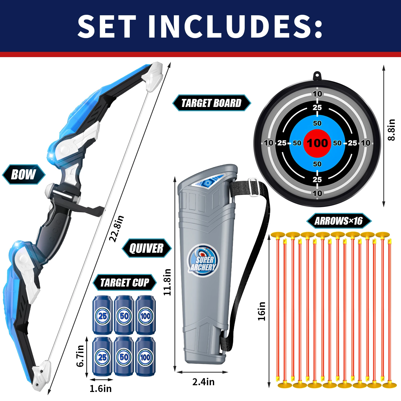 Bow and Arrow Toys with Light-up LED for Kid Age 3+, Archery and Target Set, Indoor & Outdoor Sports Games