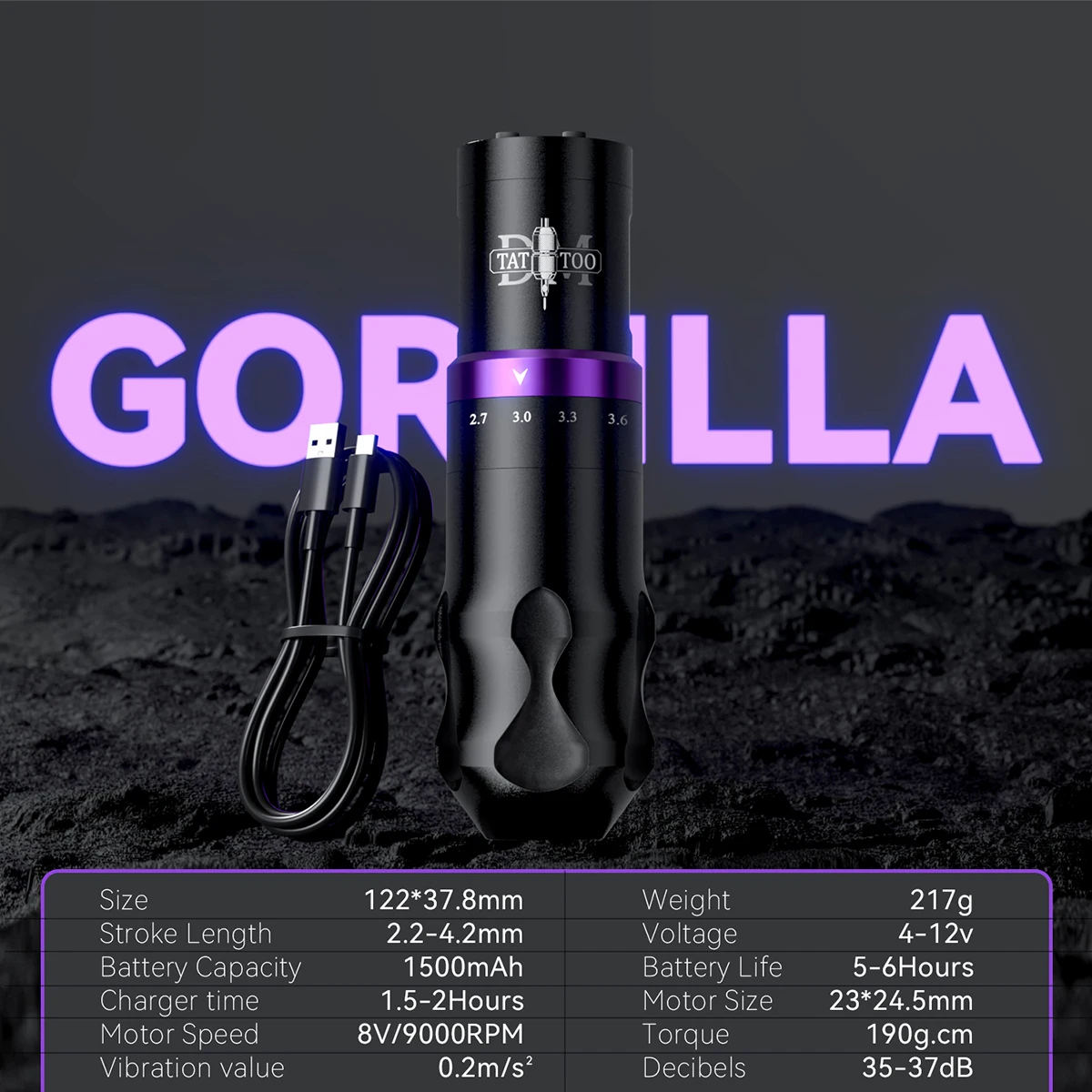 DM Gorilla Wireless Tattoo Kit Adjustable Stroke Tattoo Machine 1500mAh Powerful Customized Low Noise Motor For Permanent Makeup