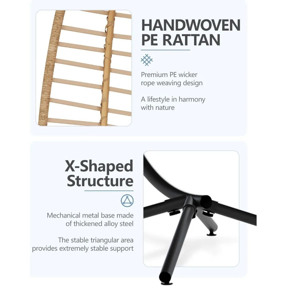 Designed for durability while remaining elegant, the chair combines a sturdy alloy steel frame with a rust-resistant finish and weatherproof PE rattan wicker. The included stand keeps the egg chair stable, and it supports up to 350 pounds for worry-free lounging.