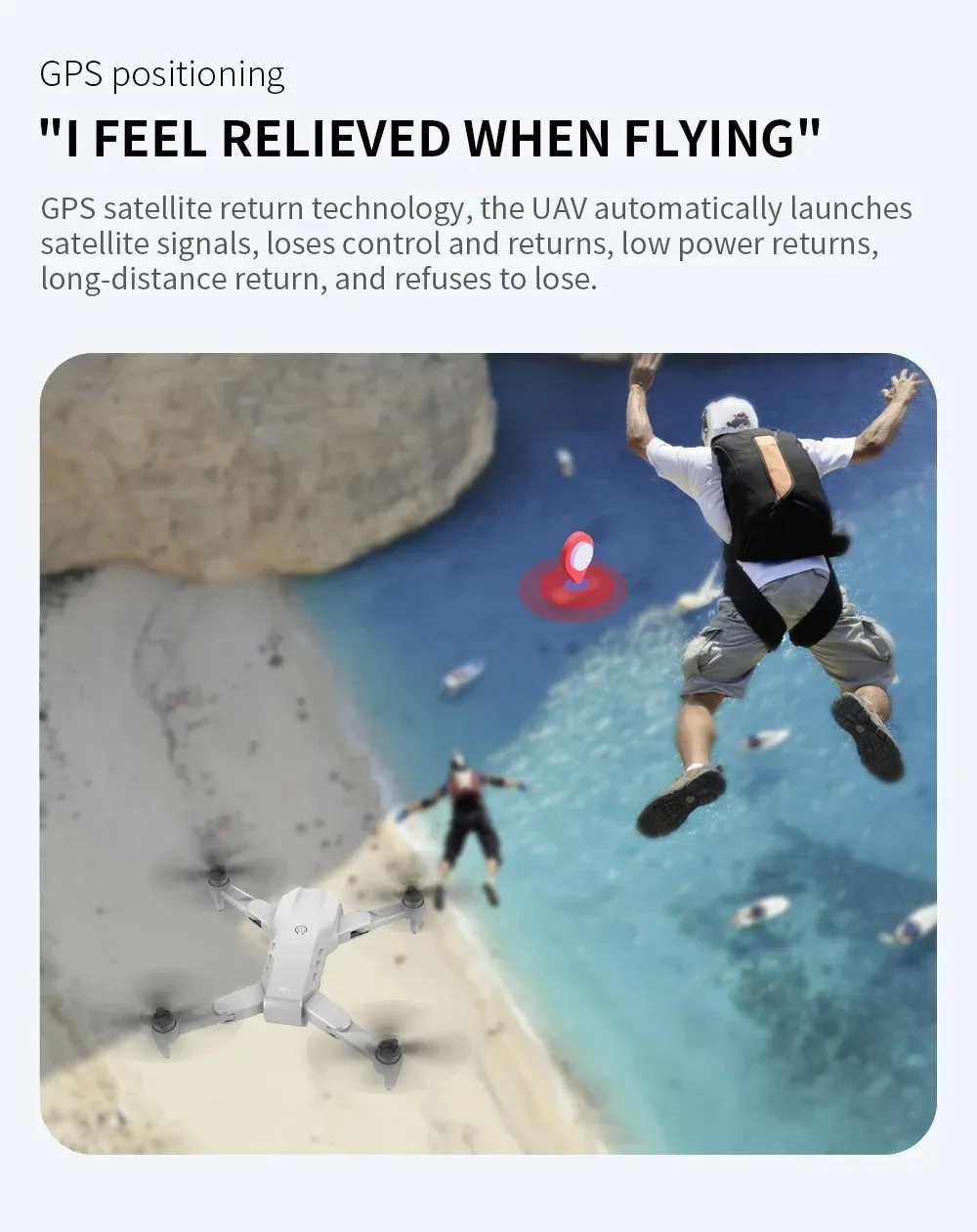 - GPS Assisted Flight. Provides you with accurate positioning details of your drone.The drone will automatically return to home precisely when its battery is low or the signal is weak when flying out of range, never worrying about losing the drone.