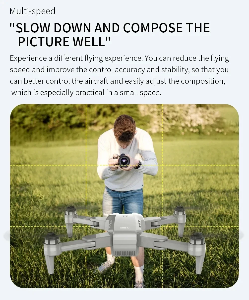 - Follow Me Mode.The drone will automatically follows and captures you wherever you move. Keeping you in the frame at all times, easier to get complex shots, provides hands-free flying and selfie.