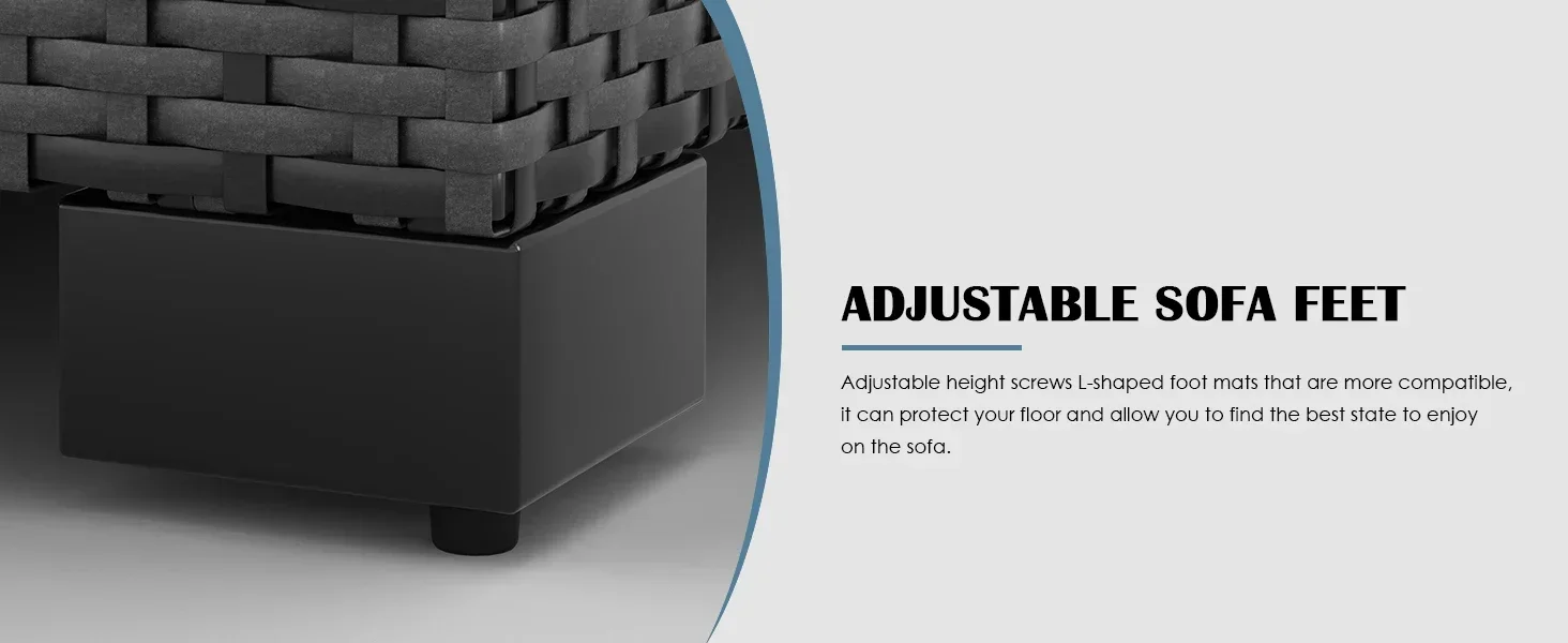 1 Cushion Anti-Slip 2 Thickened Cushion 3 Adjustable Feet 4 Hand-Woven Wicker