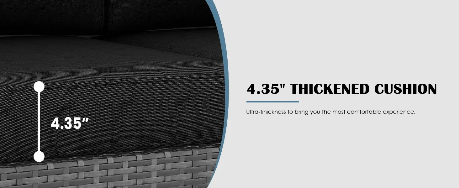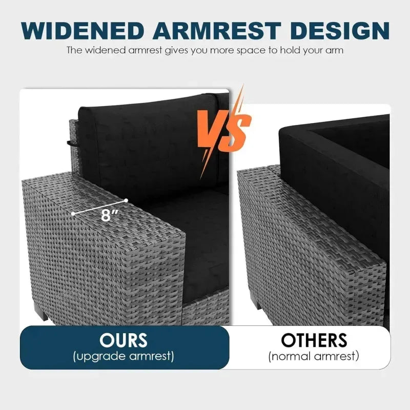 Our wicker patio furniture features an ergonomic design that provides excellent body support, reducing muscle and joint strain for enhanced relaxation during extended use.Its modern aesthetic adds a touch of sophistication to your outdoor space, blending style with comfort seamlessly.