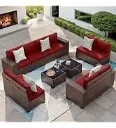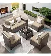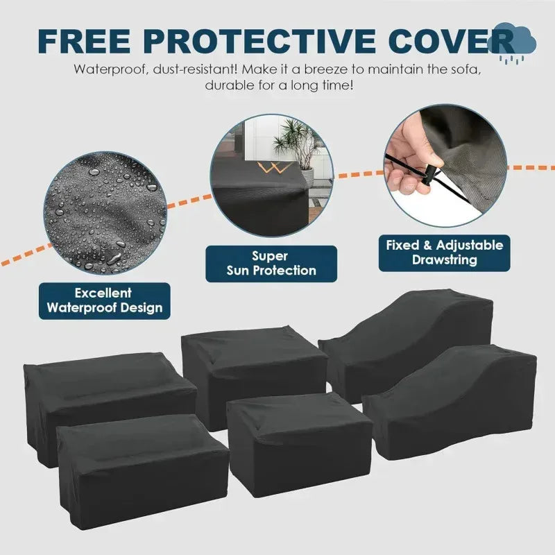 The 5-person patio furniture set is elegant and the spacious seating space is wide and sturdy.This seating group transforms the touch of life into a meticulous taste, which is in line with the human scale.With its well-designed wide armrests and ergonomically inclined backs, bring you and your family and friends a relaxed outdoor life on the front porch, poolside, garden, or backyard.Our patio set is the ultimate focal point and creates an irresistibly ambient glow for a cozy evening outdoors