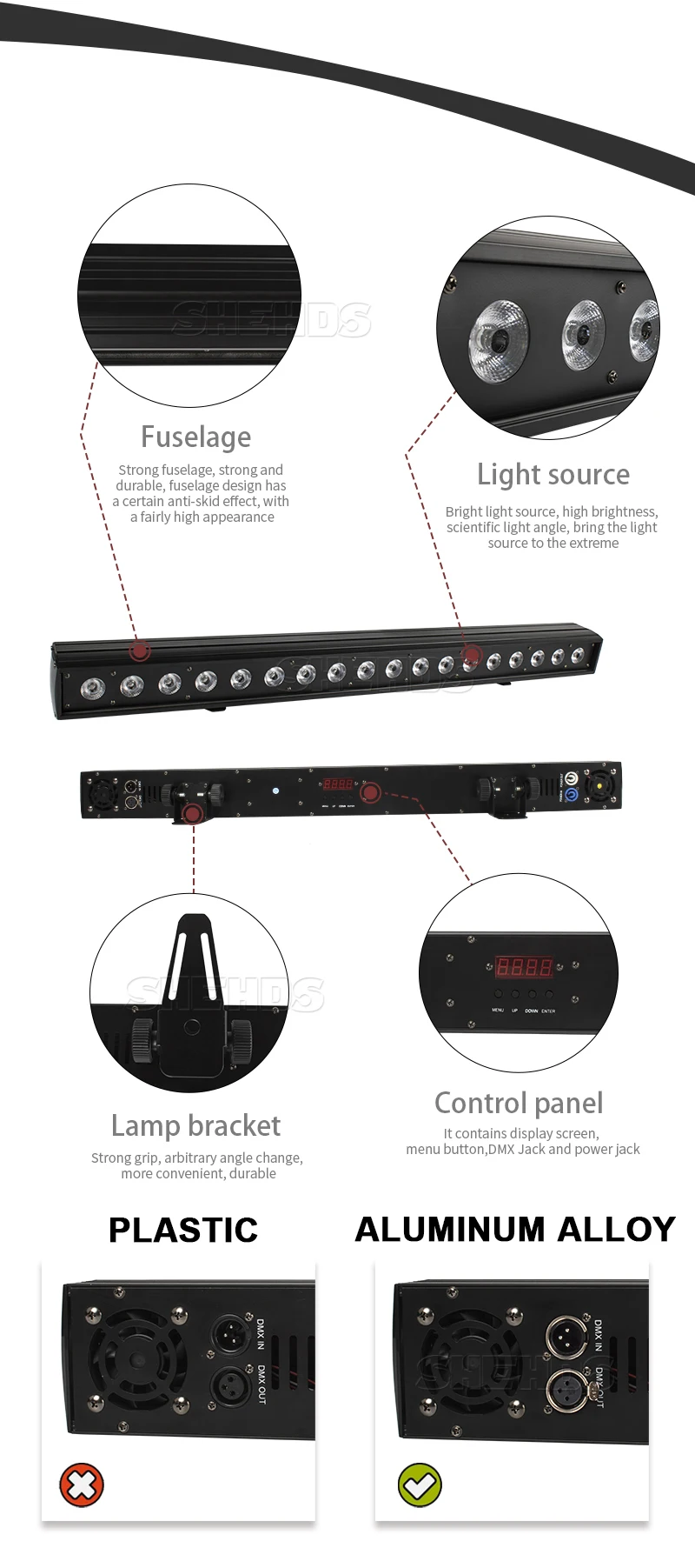 SHEHDS 2/4pcs LED Wall Wash Bar 18x18W RGBWA+UV 6in1 Lighting For Dj Disco Indoor Horse Race Lamp Christmas Decorations