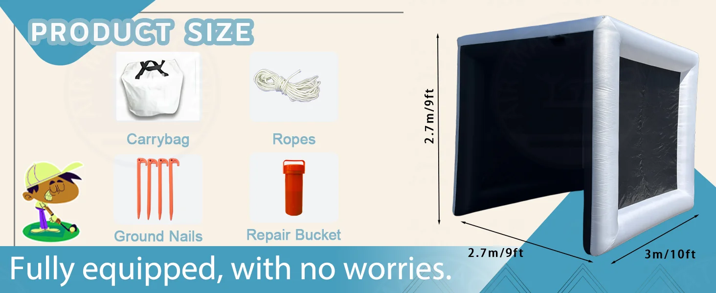 In stock at US warehouse! 10x9x9ft Oxford cloth inflatable indoor golf practice