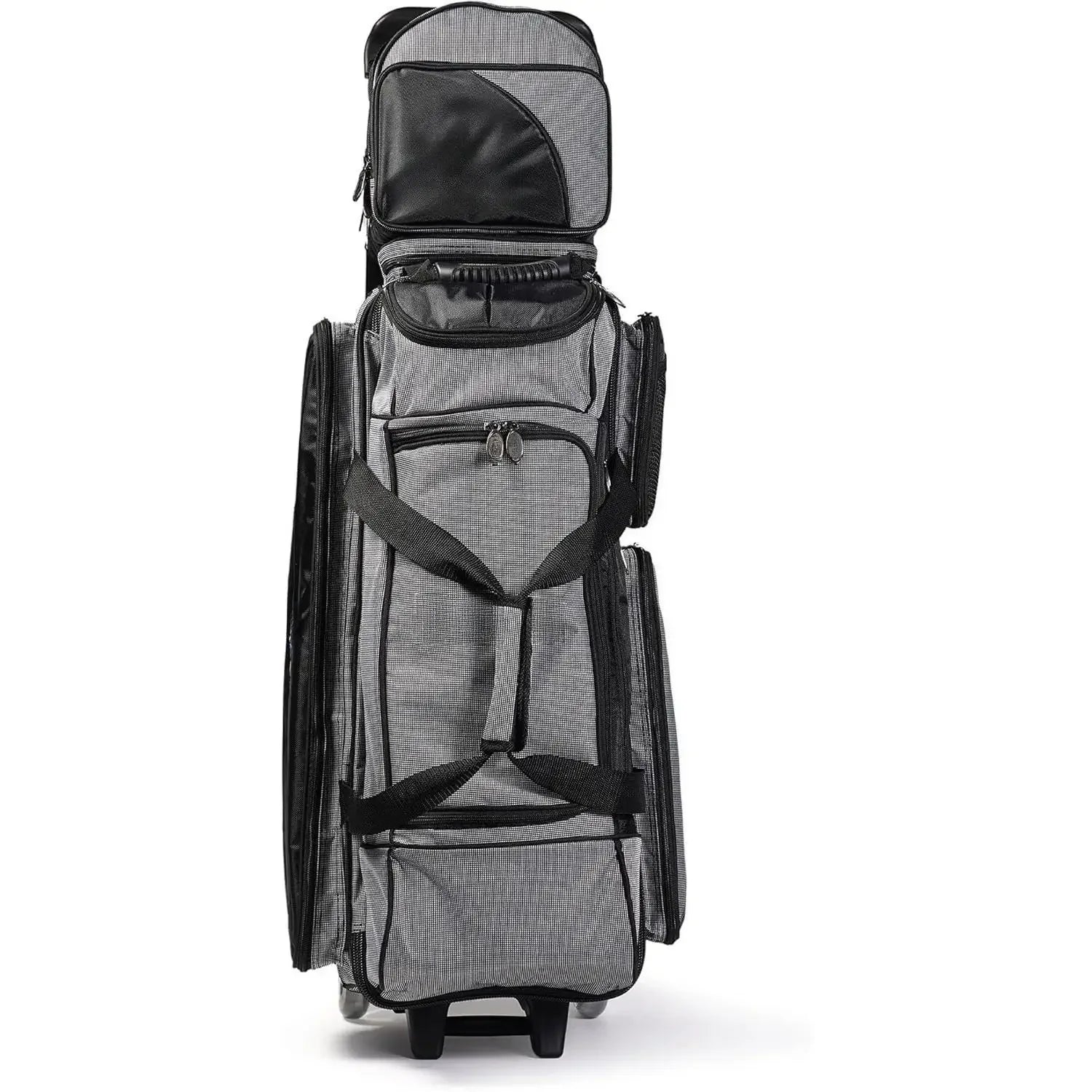 6 accessories pockets, 1 side mesh pocket and separate vented shoe compartment hold up to men's 15 size shoes